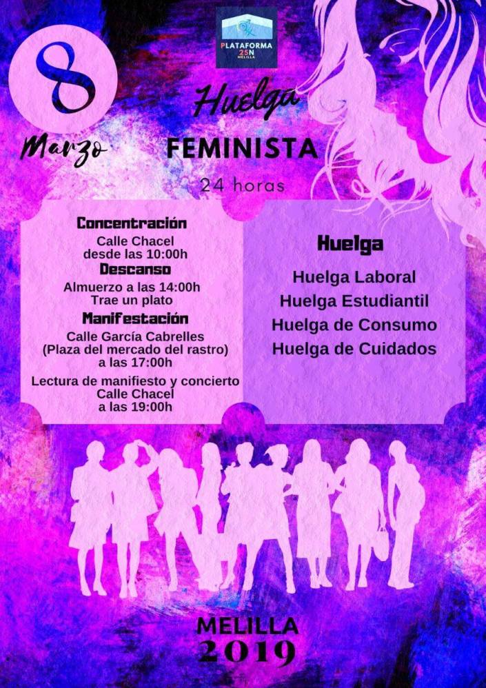 Guelaya apoya las actividades organizadas en Melilla por la plataforma 25 N en favor de las reivindicaciones feministas e invita a todas las personas de Melilla a participar en las acciones que se realizarán el viernes 8 de marzo.